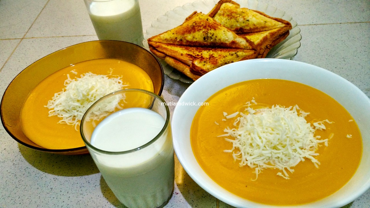 Setelah sebelumnya saya share resep broccoli cheese cream soup kali ini saya mau share varian cream soup lainnya. Yaitu, pumpkin cream soup yang merupakan salah satu cream soup favorit saya. Perpaduan antara manis dari labu dan gurih dari keju juga kirm nya tu pas banget kalau kata saya.